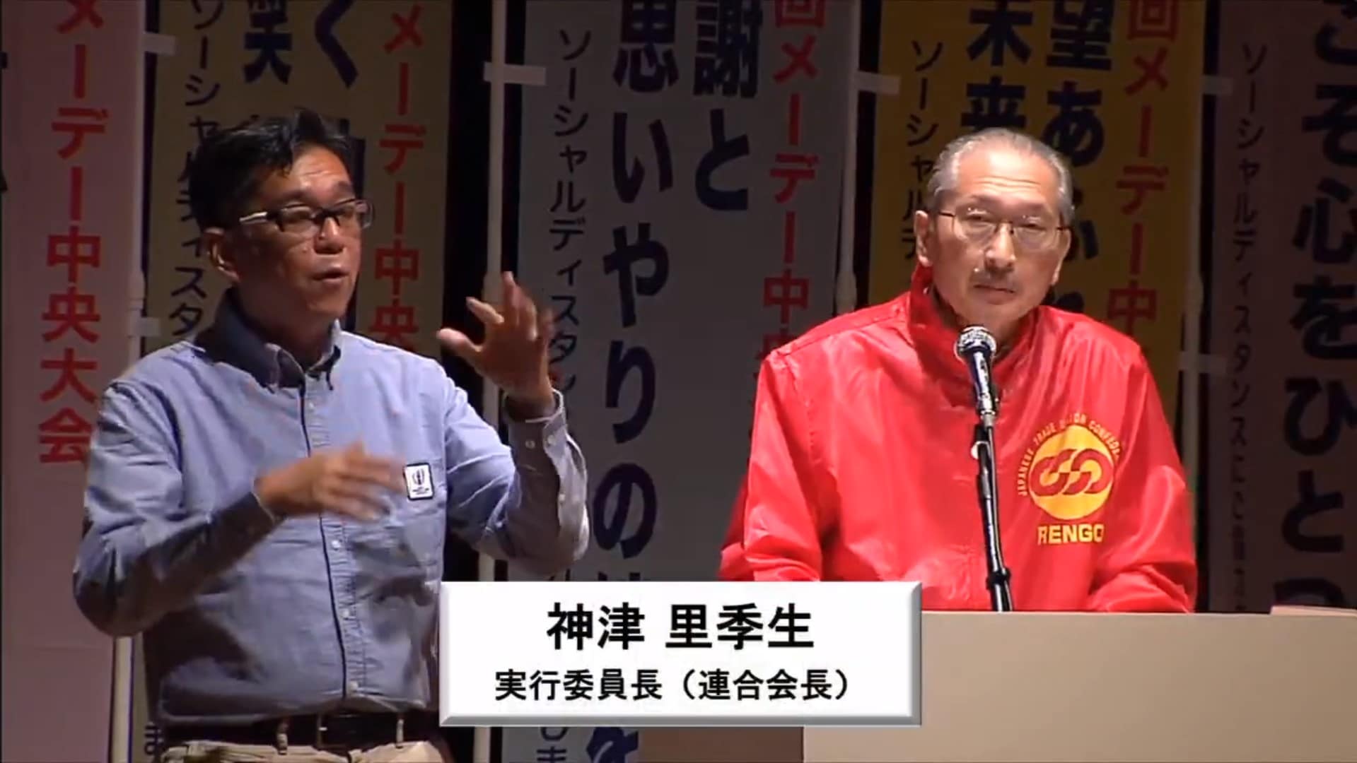 連合のメーデー。動画で確認できる範囲では、のぼりの政治色は薄めだ(https://www.youtube.com/watch?v=Lqzpk-kQc6Q)